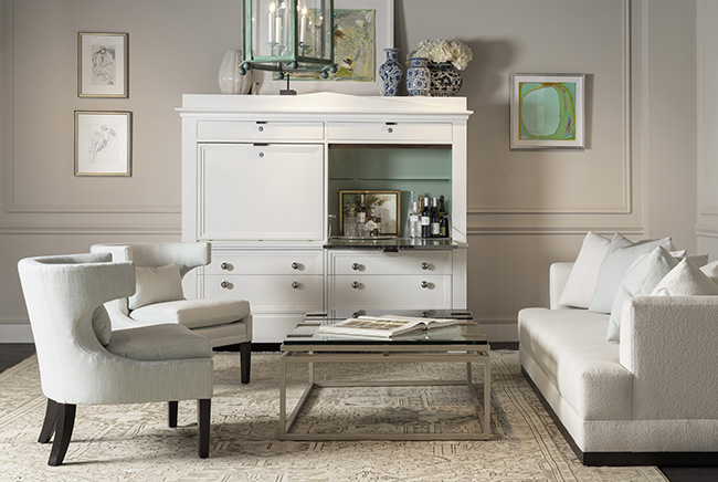 An instant icon in the design world, the Abbey Secretary continues to thrill and inspire to this day. A modern interpretation of a classic writing secretary, the Abbey can be used as a writing desk, a luxe home office, a bar, or all of the above. The Abbey is designed to allow you to personalize the mood by stacking art, vases, books or whatever you choose on it’s sturdy, smooth top and to configure the deep interior compartments to your liking.